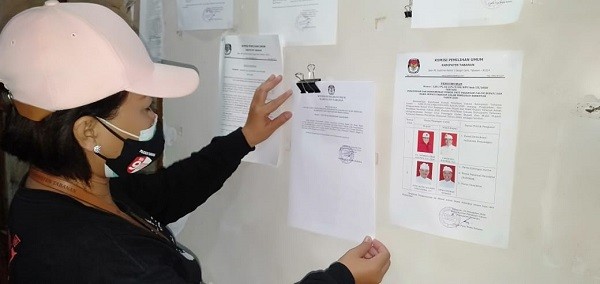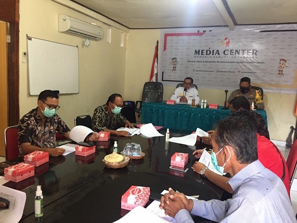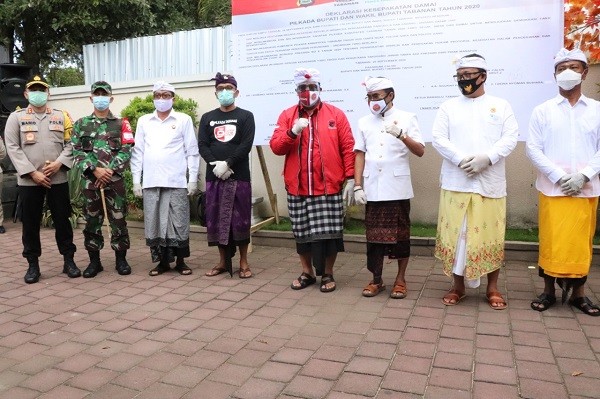 KPU Tabanan, Dangin Carik – Dalam rangka Pemilihan Serentak Lanjutan 2020 yang akan digelar secara serentak di seluruh wilayah Indonesia pada hari Rabu, 9 Desember 2020 mendatang dan sesuai dengan Peraturan KPU Nomor 5 tahun 2020, Tahapan Pilkada Serentak tahun 2020 memasuki Tahapan Kampanye. KPU Tabanan menandai Pembukaan Kampanye Pilkada Tabanan 2020 itu dengan cara menggelar penandatanganan Pakta Integritas dan Deklarasi Kampanye Damai, bertepatan dengan Hari Suci Umat Hindu yakni Hari Raya Kuningan di halaman Kantor KPU Tabanan, Pukul 16.00 Wita, Sabtu, 26/09/2020. Dari KPU Tabanan yang hadir adalah Ketua KPU Tabanan, I Gede Putu Weda Subawa, SE.,MM., Anggota KPU Tabanan Ketua Divisi Teknis Penyelenggaraan, Dra. Luh Made Sunadi dan Ketua Divisi Hukum dan Pengawasan, I Wayan Sutama, S.Sos.,MA. Selain itu hadir Ketua Divisi Perencanaan, Data dan Informasi, I Ketut Sugina, S.Pt. serta Ketua Divisi Sosialisasi, Pendidikan Pemilih, Partisipasi Masyarakat dan SDM, Ni Putu Suaryani, ST., Sekretaris KPU Tabanan, Ir. I Nyoman Swandika, M.Si., beserta Sekretariat KPU Tabanan. Dalam acara Pembukaan Kampanye Pemilihan Bupati dan Wakil Bupati Tabanan tahun 2020, sesuai Surat Ketua Komisi Pemilihan Umum (KPU) Kabupaten Tabanan, Nomor 1182/PL.02.4-Und/5102/KPU-kab/IX/2020, tanggal 22 September 2020, selain menandatangani Pakta Integritas, kedua Pasangan Calon juga menandatangani dan melakukan Deklarasi Kampanye Damai yang disaksikan Komisioner KPU Provinsi Bali Korwil Tabanan, Anak Agung Gede Raka Nakula, SH.,MH., Ketua Bawaslu Tabanan, Muspida Tabanan termasuk pihak keamanan, baik TNI dan POLRI. Adapun Pakta Integritas yang ditandatangani Kedua Pasangan Calon (Paslon), menyatakan : 1. Mematuhi dan menerapkan Protokol Kesehatan pencegahan dan pengendalian Covid-19 pada setiap Tahapan Pemilihan, sebagaimana diatur dalam Peraturan KPU nomor 6 tahun 2020 sebagaimana telah beberapa kali diubah, terakhir dengan Peraturan KPU Nomor 13 tahun 2020 dan Protokol Kesehatan yang ditetapkan oleh Instansi yang berwenang. 2. Mengutamakan kesehatan dan keselamatan para pihak dan Pemangku Kepentingan dalam pelaksanaan seluruh Tahapan Pemilihan Bupati dan Wakil Bupati Tabanan tahun 2020. 3. Menerima sanksi sesuai dengan Peraturan yang berlaku, apabila melanggar Peraturan mengenai Protokol Kesehatan pencegahan dan pengendalian Covid-19. Sedangkan Deklarasi Kampanye Damai yang ditandatangani masing-masing Pasangan Calon berbunyi : 1. Siap menjaga keutuhan Negara Kesatuan Republik Indonesia, berdasarkan Pancasila dan Undang-Undang Dasar 1945. 2. Siap mengamankan dan melaksanakan Tahapan Pilkada Kabupaten Tabanan tahun 2020 yang sejuk, aman dan damai untuk mewujudkan Demokrasi yang bermartabat. 3. Siap melaksanakan Kampanye Pilkada Kabupaten Tabanan tahun 2020 tanpa hoax, politik Sara dan politik uang. 4. Tunduk dan patuh terhadap Peraturan Perundang-undangan yang berlaku. 5. Siap melaksanakan Instruksi Presiden Nomor 6 tahun 2020 tentang peningkatan disiplin dan penegakan hukum Protokol Kesehatan dalam pencegahan dan pengendalian Covid-19. Ketua KPU Tabanan, I Gede Putu Weda Subawa dalam sambutannya mengatakan, “Sesuai dengan Peraturan KPU, bahwa hari ini, Sabtu, 26 September 2020 dimulainya Kampanye oleh Pasangan Calon Bupati dan Wakil Bupati Tabanan.” “Kami berharap dengan penandatanganan Pakta Integritas dan Deklarasi Kampanye Damai itu, Tahapan Kampanye yang berlangsung sampai 5 Desember 2020 tepatnya 71 hari dapat berjalan dengan aman dan lancar. Dan yang juga penting dalam setiap Tahapan, kedua Pasangan Calon tetap menerapkan Protokol Kesehatan sesuai anjuran Pemerintah,” ucap Weda Subawa. Diapun berharap para kandidat berkompetisi secara sehat dalam upaya memenangkan pilihan Masyarakat Tabanan serta mematuhi Protokol Kesehatan Covid-19 sesuai dengan Peraturan yang ada. “Pesan Kami sebagai Penyelenggara, silahkan para kandidat bersaing secara sehat namun dengan tetap mematuhi Protokol Kesehatan dimusim pandemi Covid-19 saat ini, siapapun yang terpilih nantinya adalah Bupati dan Wakil Bupatinya Masyarakat Tabanan,” harap Weda Subawa. Selanjutnya Weda Subawa mengingatkan kedua Pasangan Calon akan Peraturan KPU Nomor 13 tahun 2020 khususnya Pasal 88C, dimana disebutkan kegiatan Rapat umum, pentas seni, lomba, jalan santai, konser musik, peringatan HUT Partai yang dijadikan momen dalam berkampanye yang melibatkan massa terlalu banyak semuanya dilarang dan diarahkan kedalam Kampanye Daring. “Hal ini semata-mata untuk menghindari dan memotong penyebaran wabah Covid- 19 di tengah Masyarakat, para Paslon harus bisa membuat strategi yang baik untuk bisa menyampaikan program-program unggulan sehingga Rakyat Tabanan bisa menentukan pilihannya,” beber Ketua KPU Tabanan. Diakhir sambutannya Weda Subawa tidak lupa menyampaikan pantun yang berbunyi, “Buah kepundung rasanya manis, ubi keladi enak dijadikan penganan, Siapapun yang terpilih nanti, jadilah Bupati untuk Rakyat Tabanan.” Selain proses penandatanganan Pakta Integritas dan Deklarasi Kampanye Damai, masing-masing Paslon juga diberikan kesempatan untuk menyampaikan statementnya secara bergantian terkait penerapan Protokol Kesehatan dalam melakukan setiap Tahapan, utamanya Tahapan kampanye. Begitu juga Kapolres Tabanan dan Dandim Tabanan menyampaikan statementnya, siap mengawal proses Pilkada di Tabanan agar berjalan dengan aman dan lancar. Pembukaan Kampanye diakhiri dengan membuka kain penutup Baliho kedua Pasangan Calon, pelepasan burung dara dan balon di depan Kantor KPU Tabanan. Kegiatan yang dilaksanakan dalam situasi pandemi Covid-19 atau Virus Corona, dengan tetap memperhatikan Protokol Kesehatan seperti physical distancing atau menjaga jarak fisik, menggunakan masker, pengecekan suhu/temperatur tubuh dengan thermogun, memakai pelindung wajah (face shield) dan sarung tangan, menggunakan hand zanitizer atau cairan pembersih tangan serta mencuci tangan dengan sabun dan air mengalir.