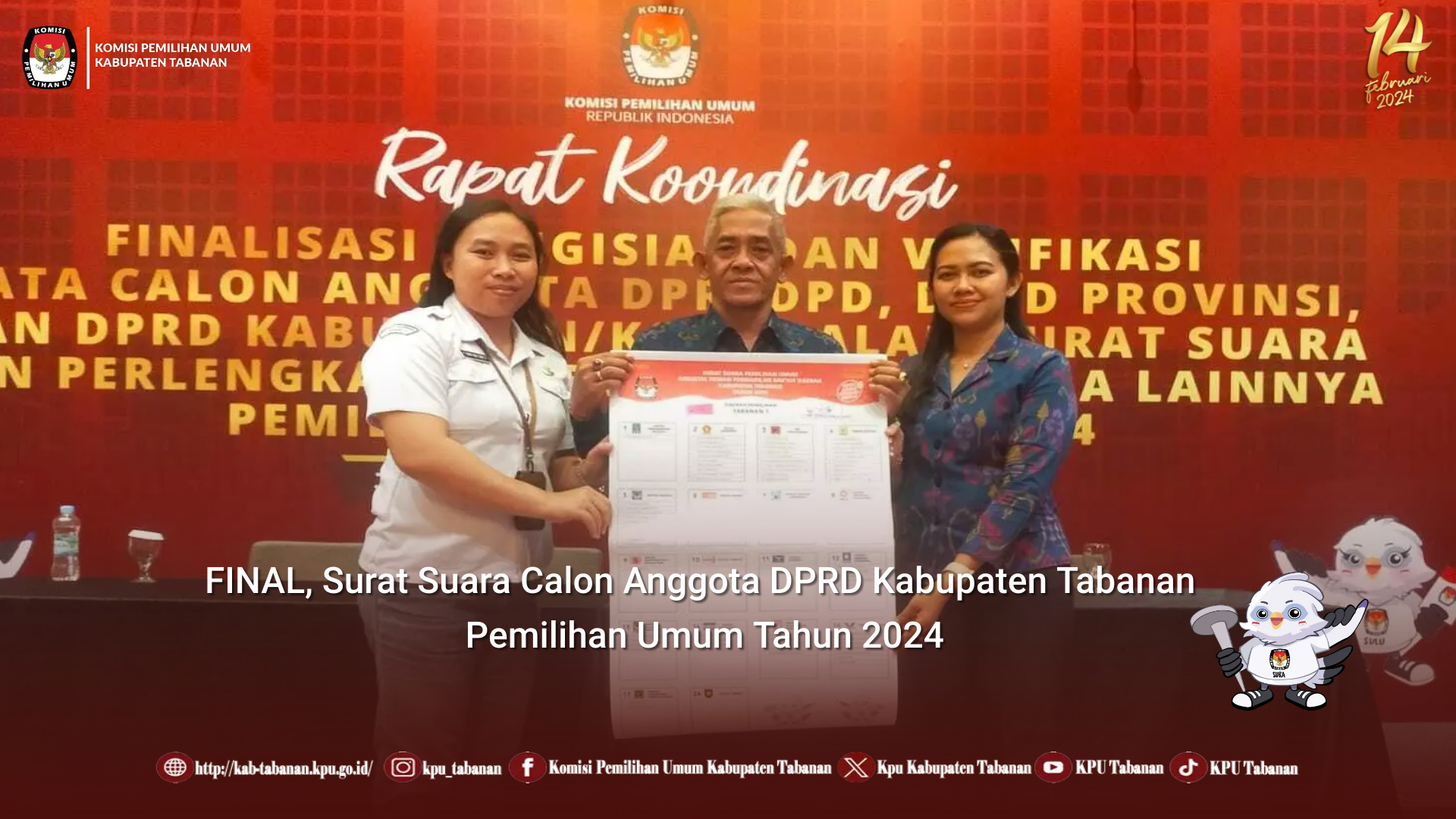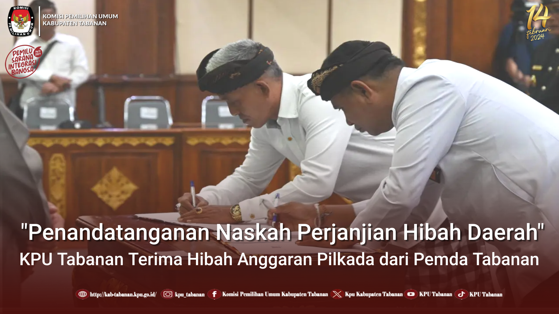 KPU Tabanan, Dangin Carik – Dengan terbitnya Pengumuman Komisi Pemilihan Umum (KPU) Nomor 117/SDM.12-Pu/04/2023 tentang Calon Anggota KPU Kabupaten/Kota Terpilih pada 87 Kabupaten/Kota di 9 Provinsi Periode 2023 – 2028 tanggal 28 Oktober 2023 dan berdasarkan Keputusan KPU Nomor 1440 Tahun 2023 tentang Penetapan Calon Anggota KPU Kabupaten/Kota Terpilih di 9 Provinsi Periode 2023 – 2028.