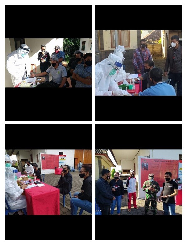 KPU Tabanan, Dangin Carik – Dalam rangka Pemilihan Bupati dan Wakil Bupati Tabanan 2020 dan untuk memastikan seluruh Anggota dan Sekretariat Panitia Pemungutan Suara (PPS) Se-Kabupaten Tabanan dalam keadaan sehat serta sebagai upaya pencegahan Covid-19, dilaksanakan Pemeriksaan Rapid Test terhadap Anggota dan Sekretariat PPS Se-Kecamatan Kediri, bertempat di Kantor Camat Kediri, Minggu, (26/07/2020). Tampak Ketua KPU Tabanan, I Gede Putu Weda Subawa, Komisioner KPU Tabanan, Ni Putu Suaryani, Sekretaris KPU Tabanan, I Nyoman Swandika, didampingi Pegawai Sekretariat KPU Tabanan, memantau jalannya Rapid Test. Pelaksanaan pemeriksaan Rapid Test terhadap PPS di masing-masing Kecamatan telah berlangsung sejak hari kamis tanggal 23 Juli 2020 dan akan berakhir pada hari sabtu tanggal 1 Agustus 2020. Kemarin tepatnya hari Sabtu tanggal 25 Juli 2020, Komisioner KPU Tabanan, I Ketut Sugina, bersama Sekretaris KPU Tabanan didampingi Pegawai Sekretariat KPU Tabanan memantau pelaksanaan Rapid Test di Kecamatan Selemadeg. Total PPS Kecamatan Selemadeg yang mengikuti Rapid Test adalah 60 Orang, yang hadir 59, tidak hadir 1 karena Sakit. Dapat Kami informasikan bahwa terdapat PPS dari Kecamatan Selemadeg Barat yang ikut Rapid Test di Kecamatan Selemadeg, karena pada saat pelaksanaan Rapid Test sebelumnya yang bersangkutan berhalangan hadir. “Untuk menunjukan bahwa Kita siap menjadi PPS, karena Rapid Test merupakan syarat bagi PPS untuk mengetahui Kita dalam keadaan sehat serta sebagai upaya pencegahan Covid-19, supaya dalam melaksanakan tugas sebagai PPS menjadi lebih baik,” ucap Ni Wayan Murdani, salah satu PPS asal Desa Nyitdah,Kediri, saat dimintai keterangan. Ni Putu Eka Yunita, salah satu Petugas Medis yang ikut melakukan pemeriksaan Rapid Test terhadap PPS di Kecamatan Kediri, saat diwawancarai mengatakan, “Kami dari Pihak Badan Rumah Sakit Umum Daerah (BRSUD) Tabanan telah menyelesaikan Pemeriksaan Rapid Test di Kecamatan Kediri, Total pasien 90 Orang, yang tidak hadir 6 Orang, jadi keseluruhan yang hadir adalah 84 Orang.” Ketidakhadiran PPS dalam Rapid Test di Kecamatan Kediri karena Sakit dan sebab lainnya. “PPS yang berhalangan hadir, baik karena sakit maupun dikarenakan hal lainnya saat pelaksanaan Rapid Test di masing-masing kecamatan, dapat mengikuti Pemeriksaan Rapid Test pada pelaksanaan Rapid Test di kecamatan lainnya atau bisa datang langsung ke BRSUD Tabanan,” terang I Gede Putu Weda Subawa. Dalam pelaksanaan Rapid Test di masing-masing Kecamatan yang telah berjalan, terlihat Panitia Pemilihan Kecamatan (PPK) mendampingi KPU Tabanan dalam monitoring serta dari Panitia Pengawas Kecamatan (Panwascam) maupun Pengawas di tingkat Desa melakukan Pengawasan. Kegiatan yang dilaksanakan dalam situasi Pandemi Covid-19 atau Virus Corona ini, tetap memperhatikan Protokol Kesehatan seperti physical distancing atau menjaga jarak fisik dan dengan menggunakan masker.