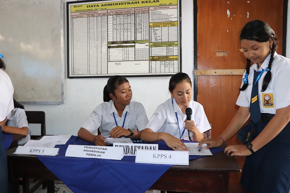 KPU Tabanan Rumah pintar Pemilu (RPP) sebagai sarana edukasi Kepemiluan bagi masyarakat harus terus dikembangkan,baik dari sisi aktifitas maupun bangunannya. Dari asfek bangunan keberadaan materi atau alat peraga sebagai sumber informasi bagi pemilih harus terus diperbaharui kontennya. Tentunya dengan kelengkapan berbagai materi / alat peraga tersebut bisa menjadi daya tarik bagi masyarakat untuk datang berkunjung dan belajar Kepemiluan di Rumah Pintar Pemilu Selasa kemarin (22/10) 2019 Siswa SMAN I TABANAN berkunjung ke Rumah Pintar Pemilu milik KPU Tabanan yang berada di Kantor KPU Kabupaten Tabanan. Kunjungan dimulai pada pukul 08.30 wita .Siswa diterima oleh Ketua dan Anggota KPU kemudian dilanjutkan dengan pemaparan materi oleh anggota KPU Tabanan Divisi Sosialisasi,Parmas dan SDM ( Ni Putu Suaryani ) . Pada sesi selanjutnya para siswa juga disajikan tayangan video bertema Pemilu yang berdurasi kurang lebih 5 menit . Setelah dirasa cukup memahami materi para siswa diarahkan untuk praktek langsung menuju ke Sample TPS yang ada di Rumah Pintar Pemilu,mereka dilibatkan langsung dalam proses Pemungutan suara dari awal hingga akhir. “Semoga ilmu yang didapat hari ini bisa bermanfaat untuk adik adik ,utamanya untuk bangsa dan Negara dalam kehidupan berdemokrasi “, tegas Ani ( Suaryani ) .
