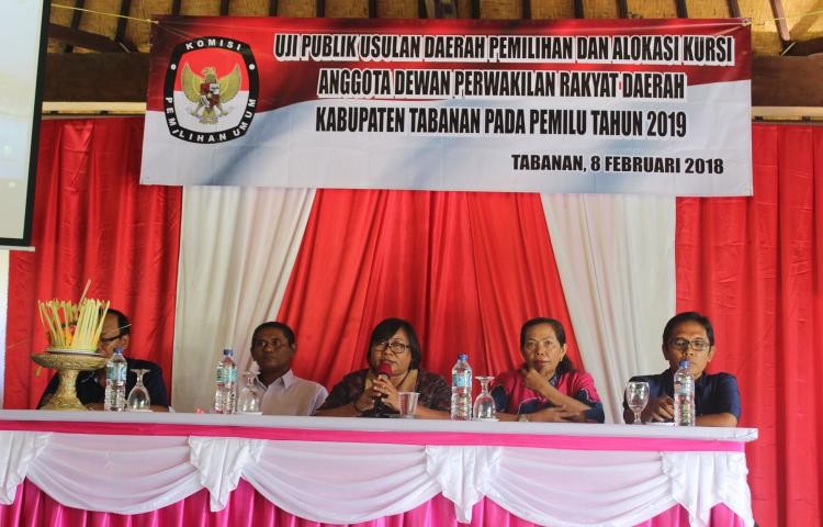 Acara dibuka oleh Ketua KPU Kabupaten Tabanan pukul 10.00 Wita, selanjutnya menyanyikan lagu Indonesia Raya dirangkaikan dengan Mars Pemilu, dan Doa. Pengarahan dari Komisi Pemilihan Umum Provinsi Bali ‘’ Ni Putu Ayu Winariati’’.