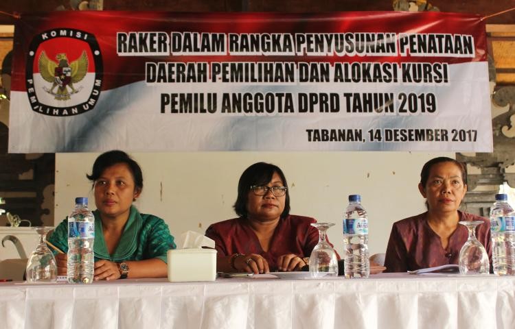 www.kpu-tabanan kab.go.id – KPU Kabupaten Tabanan, Kamis (14/12) mengadakan Raker Penyusunan Penataan Daerah Pemilihan dan Alokasi Kursi Pemilu Tahun 2019 dihadiri oleh Muspida, Camat, Parpol LSM, Akademisi, Forum Kerukunan Umat Beragama dan Pewarta.