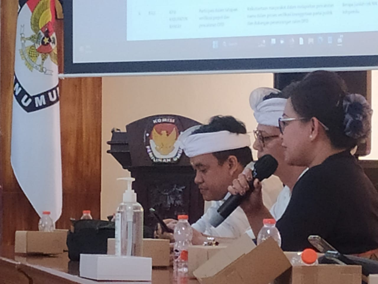 Kegiatan itu terkait rapat koordinasi penyusunan indeks partisipasi Pemilu di Provinsi Bali dalam rangka Pemilu tahun 2024. Turut hadir mendampingi Ni Putu Suaryani yakni Kepala Sub Bagian (Kasubbag) Teknis Penyelenggaraan Pemilu, Partisipasi, dan Hubungan Masyarakat Sekretariat KPU Tabanan, Putu Eviyanti Dewi Lestari.