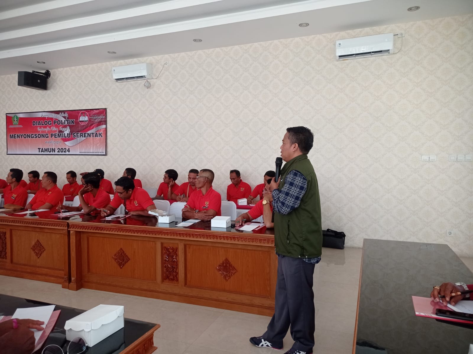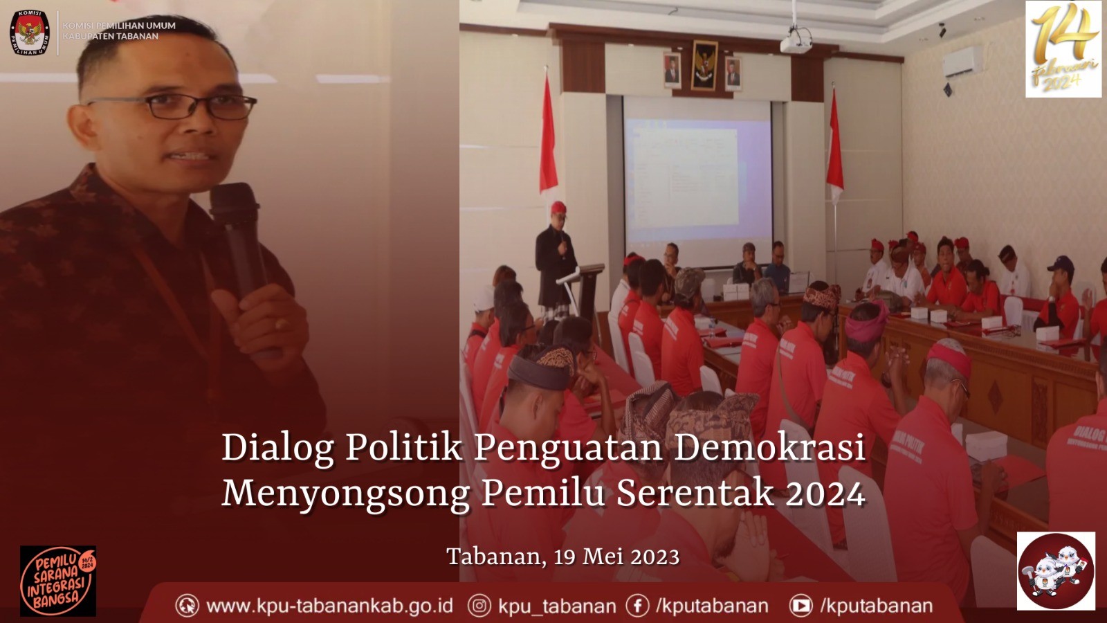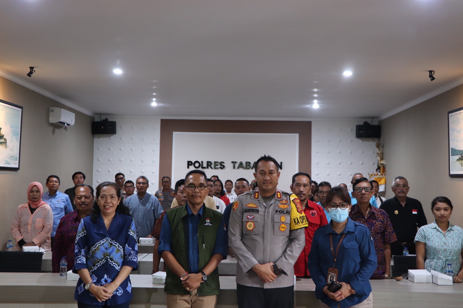 KPU Tabanan, Dangin Carik – Sehubungan dengan pelaksanaan Tahapan Pemilu Serentak 2024, Komisi Pemilihan Umum (KPU) Kabupaten Tabanan bekerjasama dengan Polres Tabanan mengadakan kegiatan dengan tema Sinergitas KPU Kabupaten Tabanan dan Polres Tabanan dalam mendukung penyelenggaraan Pemilu Serentak tahun 2024. Kegiatan dimulai sekitar pukul 09.30 Wita, bertempat di ruang Vircon Sarja Arya Racana Polres Tabanan, Jalan Pahlawan Nomor 12, Delod Peken – Tabanan, Selasa (23/05/2023). Hadir dalam acara yakni Ketua KPU Tabanan, I Gede Putu Weda Subawa dan Anggota KPU Tabanan Ketua Divisi Teknis Penyelenggaraan, Luh Made Sunadi serta Ketua Divisi Sosialisasi, Pendidikan Pemilih, Parmas dan SDM, Ni Putu Suaryani. Hadir pula Kapolres Tabanan, AKBP Leo Dedy Defretes,S.H.,S.I.K.,M.H. Sedangkan Peserta berasal dari Ketua Partai tingkat Kabupaten yang ada di Kabupaten Tabanan dengan mengajak 1 Orang Petugas Penghubung (LO). Turut hadir perwakilan Badan Kesbangpol Kabupaten Tabanan dan salah satu Anggota Bawaslu Kabupaten Tabanan, I Made Winarya. Saat membuka acara, I Gede Putu Weda Subawa mengatakan, “Kita mesti menjaga situasi keamanan politik khususnya di Kabupaten Tabanan, itu harapan Saya, seperti yang diharapkan Bapak Kapolres juga.” Luh Made Sunadi juga mengungkapkan dalam pemaparan materinya antara lain menjelaskan Tahapan Pencalonan Anggota DPRD Kabupaten Tabanan dan terkait pengajuan Bakal Calon Anggota DPRD Kabupaten Tabanan dalam Pemilu Serentak 2024, dilanjutkan arahan Kapolres Tabanan serta diskusi. (Humas KPU Tabanan).