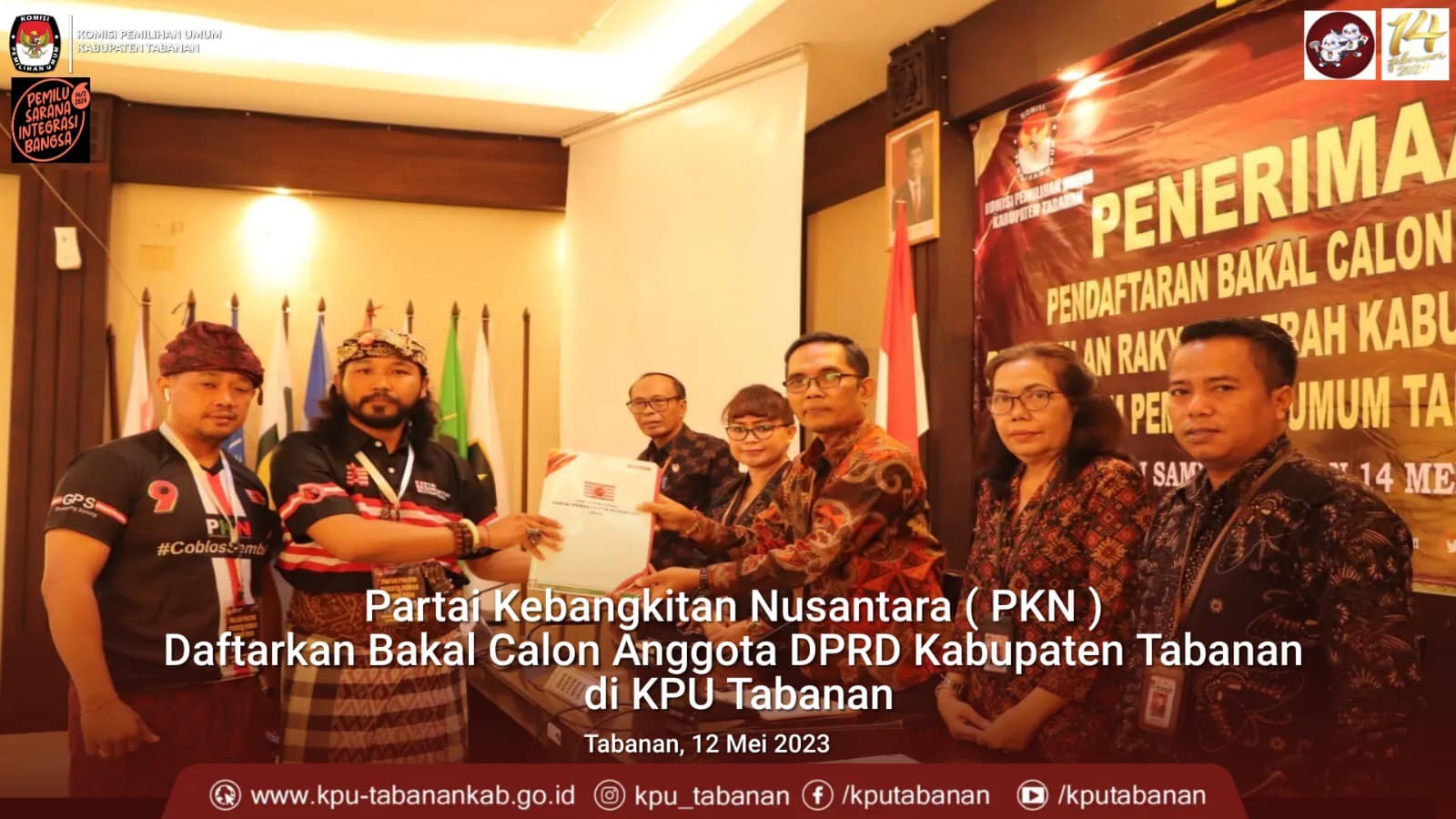 Partai Amanat Nasional ( PAN ) ajukan Bakal Calon Anggota DPRD Kabupaten Tabanan di KPU Tabanan. PAN diterima oleh KPU Tabanan, Senin ( 14/5 ) Pukul : 22.38 wita. Dalam pengajuan tersebut hadir Ketua DPD PAN Tabanan, Yom Eko Saputrost dan jajaran, Bacaleg, LO dan Admin Silon. KPU Tabanan melakukan pengecekan berkas melalui aplikasi Silon oleh Admin dan operatos Silon KPU Tabanan, kemudian KPU Tabanan memberikan status DITERIMA karena berkas pengajuan telah lengkap dan diterima.