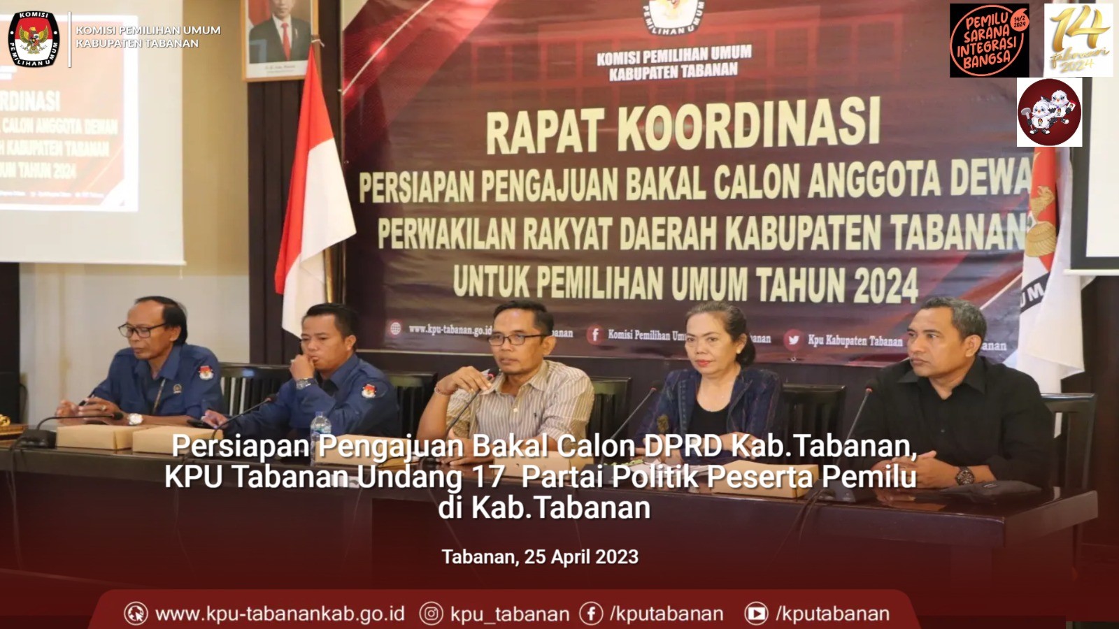 KPU Tabanan, Dangin Carik – Mulai hari ini tepatnya tanggal 1 Mei 2023, Komisi Pemilihan Umum (KPU) Kabupaten Tabanan melaksanakan Tahapan Pemilu Serentak 2024 yakni penerimaan pendaftaran Bakal Calon Anggota Dewan Perwakilan Rakyat Daerah (DPRD) Kabupaten Tabanan dalam Pemilu tahun 2024. Suasana di hari pertama pendaftaran Bakal Calon Anggota Dewan Perwakilan Rakyat Daerah (DPRD) Kabupaten Tabanan sampai berita ini diturunkan terpantau belum ada satu pun dari Parpol yang mengajukan Bakal Calonnya ke KPU Tabanan. Sebagai informasi, Penerimaan pendaftaran akan dilaksanakan di salah satu ruangan yang ada di KPU Tabanan. Mengutip dari media sosial KPU Tabanan, Senin (01/05/2023), Ketua KPU Tabanan, I Gede Putu Weda Subawa, menyampaikan bahwa di KPU Tabanan pada intinya sudah siap menerima pendaftaran Bakal Calon Anggota DPRD Kabupaten Tabanan. Diungkapkannya pula persiapan kegiatan ini sudah sesuai dengan prosedur, yakni Peraturan KPU Nomor 10 tahun 2023 Tentang Pencalonan Anggota DPR, DPRD Provinsi, dan DPRD Kabupaten/Kota. Dijelaskannya juga kegiatan akan berlangsung selama beberapa hari yakni dari tanggal 1 Mei 2023 – 14 Mei 2023. Tim HelpDesk Pencalonan yang ada di KPU Tabanan akan menerima pendaftaran Bakal Calon Anggota DPRD Kabupaten Tabanan dari pukul 08.00 Wita – 16.00 Wita (1 Mei -13 Mei 2023), untuk hari terakhir tepatnya tanggal 14 Mei 2023 Tim HelpDesk akan buka dari pukul 08.00 Wita sd. pukul 23.59 Wita. Sedangkan dari Bawaslu Kabupaten Tabanan, terlihat sejak tadi pagi sudah hadir di KPU Tabanan untuk mengawasi jalannya Tahapan pendaftaran Bakal Calon Anggota Dewan Perwakilan Rakyat Daerah (DPRD) Kabupaten Tabanan dalam Pemilu tahun 2024. (Humas KPU Tabanan).