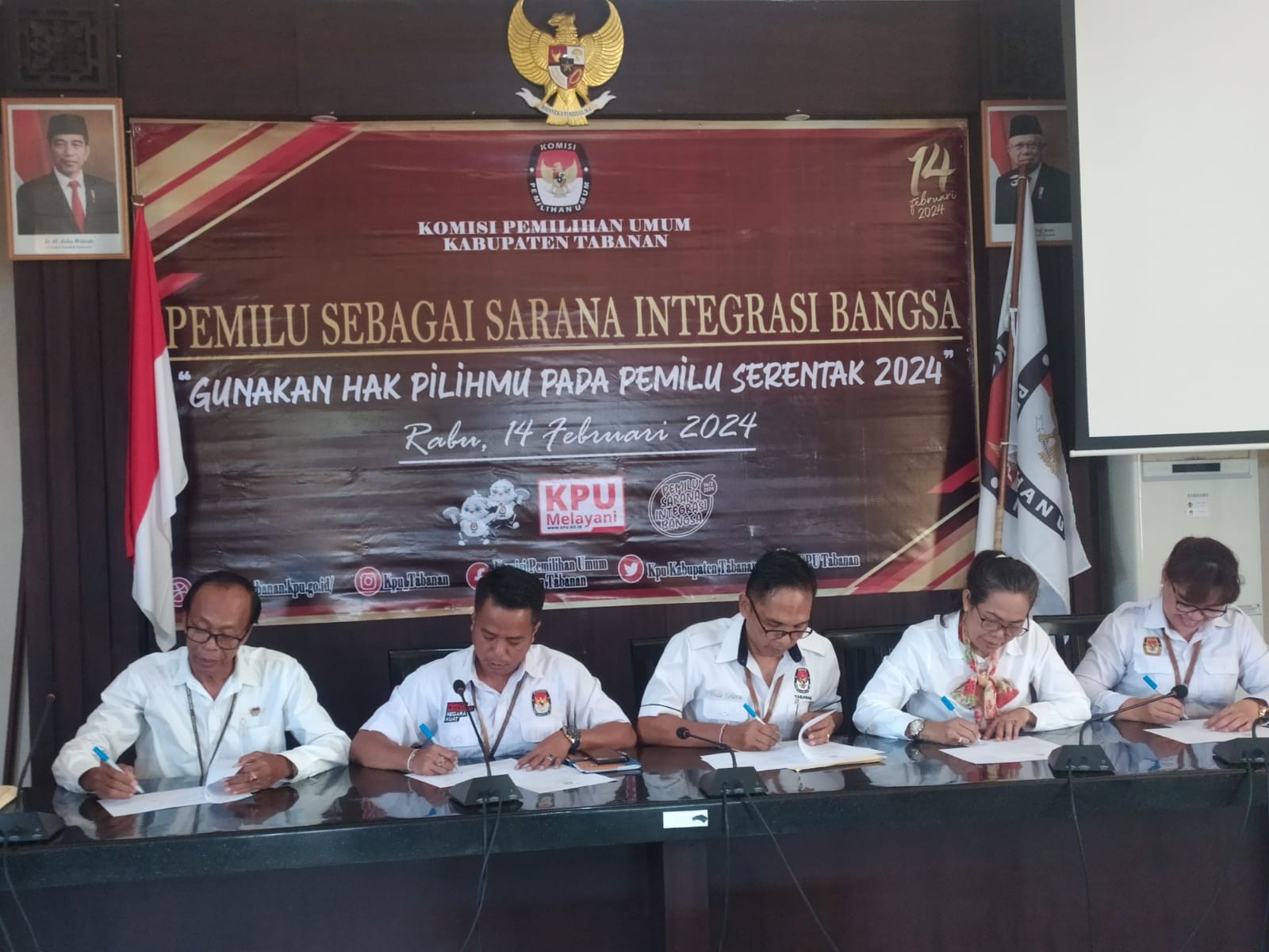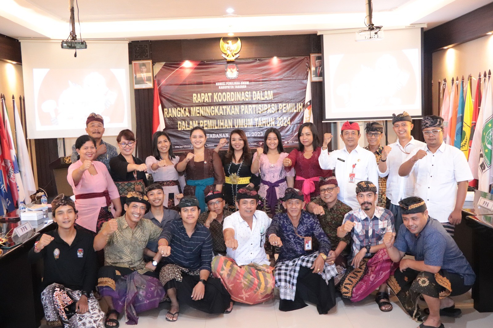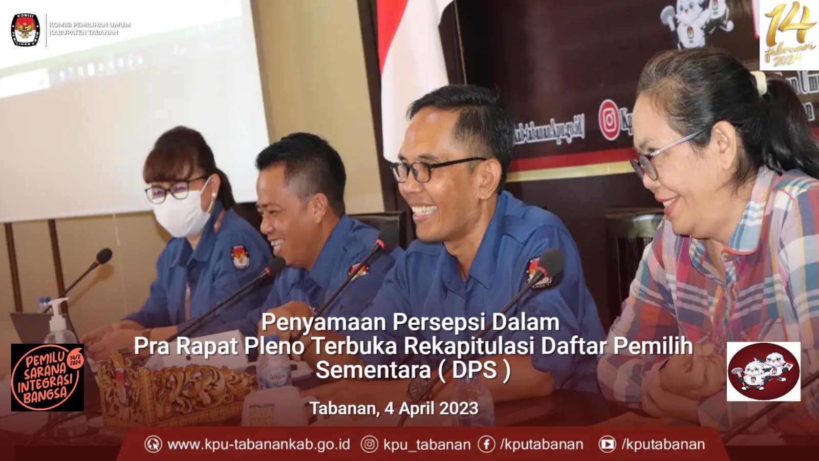 KPU Tabanan, Dangin Carik – Dalam rangka meningkatkan partisipasi Pemilih dan kapasitas sumber daya manusia pada Pemilu Serentak tahun 2024 mendatang, Komisi Pemilihan Umum (KPU) Kabupaten Tabanan mengumpulkan sepuluh Ketua Panitia Pemilihan Kecamatan (PPK) yang ada di Kabupaten Tabanan untuk rapat koordinasi sekitar pukul 09.30 Wita, bertempat di ruang rapat Kantor KPU Tabanan, Kamis (06/04/2023). Turut hadir Anggota PPK Tabanan yang menangani sosialisasi, selain itu hadir pihak Dinas Komunikasi dan Informatika (Kominfo) Kabupaten Tabanan. Kegiatan ini dihadiri Ketua KPU Tabanan, I Gede Putu Weda Subawa beserta Anggota KPU Tabanan. Diawali dengan menyanyikan lagu kebangsaan Indonesia Raya dan Jingle Pemilu dan Doa bersama dilanjutkan sambutan Ketua KPU Tabanan. “Tahapan sudah berjalan, sosialisasi merupakan hal yang sangat penting. Kita harus memiliki terobosan baru, komunikasi adalah yang paling penting. Jadikan kegiatan ini sebagai memontum untuk meningkatkan partisipasi Pemilih pada Pemilu Serentak 2024. Kita harus bisa menangkis berita hoax dan siapkan mental serta tingkatkan kerja sama. Buat konten yang memiliki edukasi kepada Masyarakat, Kita harus tahu terkait Tahapan Pemilu,” ungkap Weda. Ditambahkannya, “Sepanjang sesuai regulasi silahkan jalankan dan bekerjasamalah dengan Lembaga lain, intinya adalah komunikasi. Sedangkan Anggota KPU Tabanan Ketua Divisi Teknis Penyelenggaraan, Luh Made Sunadi mengungkapkan, “Corongnya sebuah Lembaga itu ada di Divisi sosialisasi karena Divisi sosialisasi harus mengetahui semua divisi lainnya, Tahapan Kampanye juga nanti akan menjadi tugas Divisi sosialisasi. Disamping itusosialisasi tidak hanya tentang 14 Februari 2024 tetapi bagaimana Tahapan Pemilu dari awal sampai akhir.” Hal lainnya juga dikemukakan I Ketut Sugina, yang merupakan Anggota KPU Tabanan Ketua Divisi Perencanaan, Data dan Informasi. Beliau menyampaikan bahwa tugas utama Divisi Sosialisasi untuk mensosialisasikan terkait Pemilu Serentak yang akan digelar tanggal 14 Februari 2024 nanti, agar Masyarakat mau datang ke Tempat Pemungutan Suara (TPS) dan menggunakan hak pilihnya. Diungkapkannya pula, “Saya mengucapkan terima kasih kepada Kawan – Kawan Divisi sosialisasi karena telah mengekspos semua kegiatan Tahapan Pemilu. Sesi selanjutnya pemaparan materi oleh Anggota KPU Tabanan Ketua Divisi Sosialisasi, Pendidikan Pemilih, Parmas dan SDM, Ni Putu Suaryani, “Kita harus berupaya terkait pola apa yang semestinya Kita laksanakan terkait peningkatan partisipasi Pemilih,’ ungkap Ani panggilan akrabnya disela-sela penyampaian materinya. Dijelaskannya pula, “Terkait berita hoax dan isu SARA, bagaimana tugas Kita untuk memberikan informasi yang benar. Kami telah melaksanakan program Desa Peduli Pemilu dan Pemilihan (DP3) dalam rangka Pemilu Serentak 2024 pada beberapa Desa yakni di Desa Angseri, Kecamatan Baturiti dan Desa Samsam, Kecamatan Kerambitan. Kita juga telah ke Desa Mundeh, Kecamatan Selemadeg Barat dan ke Desa Bajera, Kecamatan Selemadeg serta ke Desa Baru, Kecamatan Marga terkait program DP3. KPU Tabanan juga telah membuat podcast dan menyebarkan informasi melalui Website KPU Tabanan. Selain itu KPU Tabanan menyebarkan informasi melalui media sosial telah bekerjasama dengan multi pihak terkait sosialisasi. Sesi terakhir diisi dengan diskusi dan sebagi hasil rapat, Ni Putu Suaryani menyimpulkan beberapa hal, yang pertama setiap minggu di bulan April 2023, PPK diharapkan mengupload satu konten, bentuk apa saja boleh, nantinya minimal ada 800 Viewers, kalau tidak mendapatkan jumlah seperti tersebut artinya PPK belum maksimal dalam menyebarkan informasinya. “Bekerjalah dengan hati dan iklas,” tutupnya. (Humas KPU Tabanan).