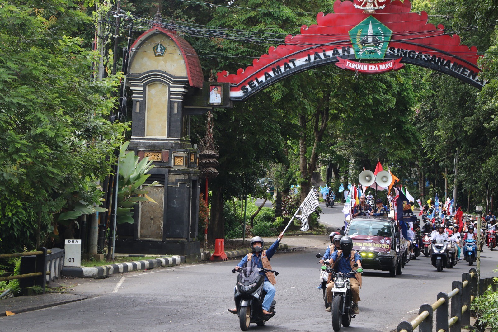 KPU Tabanan, Dangin Carik – Menjelang satu tahun pelaksanaan Pemilu Serentak tahun 2024, KPU Kabupaten Tabanan melaksanakan Touring, dengan Peserta Pemilu. Acara dimulai sekitar pukul 08.30 Wita, start dimulai dari Kantor KPU Tabanan, Jalan PB. Sudirman, Nomor 1 Dangin Carik, Tabanan, Selasa (14/02/2023). Para Peserta Pemilu yang hadir pada tanggal 14 Februari 2023 ini yang berbarengan dengan hari kasih sayang (Valentine Day) yakni dari perwakilan Partai Politik dengan mengajak beberapa Anggotanya diantaranya dari PKB, GERINDRA, PDI PERJUANGAN, GOLKAR, NasDem, GELORA, PKS, PKN, HANURA, GARUDA, PAN, PBB, DEMOKRAT, PSI, PERINDO, PPP dan Parpol UMMAT. Selain dari Parpol, Peserta Touring juga berasal dari Perwakilan Bawaslu Kabupaten Tabanan, Kesbangpol Kabupaten Tabanan serta dihadiri Panitia Pemilihan Kecamatan (PPK) Se-Kabupaten Tabanan. Dengan menggunakan sepeda motor dan khususnya dari pihak Parpol menghiasi kendaraannya dengan Bendera Parpolnya masing-masing sekaligus untuk memperkenalkan Bendera Parpolnya kepada Masyarakat. Setelah Peserta Touring dilepas oleh Ketua KPU Tabanan, I Gede Putu Weda Subawa dan dengan dikawal Petugas dari Kepolisian, selanjutnya menuju beberapa jalan strategis yang ada di Tabanan dan Rombongan beristirahat di Taman Makam Pahlawan Margarana sekaligus diisi foto bersama, dilanjutkan kembali menuju Kantor KPU Tabanan untuk finish. Setibanya kembali di KPU Tabanan dengan dikomandani Ketua KPU Tabanan perwakilan masing-masing Parpol secara berbarengan menaikan Benderanya masing-masing pada tiyang yang sudah ditentukan bertempat di halaman Kantor KPU Tabanan. “Kegiatan ini bertujuan untuk mengingatkan Kita bahwa Pemilu Serentak 2024 tepat satu tahun pada hari ini, selain itu untuk mempererat persaudaraan diantara Kita karena Kita adalah Saudara dan khususnya kepada Para Parpol agar tetap menjaga persahabatan demi terciptanya kedamaian. Tidak ada gunanya gontok -gontokan,” ucap Weda menjelang acara menaikan Bendera Parpol secara Serentak di halaman KPU Tabanan. Sebagai informasi, di halaman Kantor KPU Kabupaten Tabanan saat ini telah berkibar sebanyak 17 (Tujuh Belas) jenis Bendera Partai Politik Peserta Pemilu Serentak tahun 2024 dan hari ini menandakan Pemilu Serentak akan digelar tepat satu tahun lagi yakni pada hari Rabu tanggal 14 Februari tahun 2024. Kedepannya KPU Tabanan juga berencana akan memasang Bendera Parpol Buruh meskipun untuk di Kabupaten Tabanan Partai tersebut tidak ada dan nantinya jika Bendera Parpol Buruh telah dikibarkan di KPU Tabanan maka total jumlah Bendera Parpol yang berkibar di KPU Tabanan akan menjadi 18 buah. (Humas KPU Tabanan).