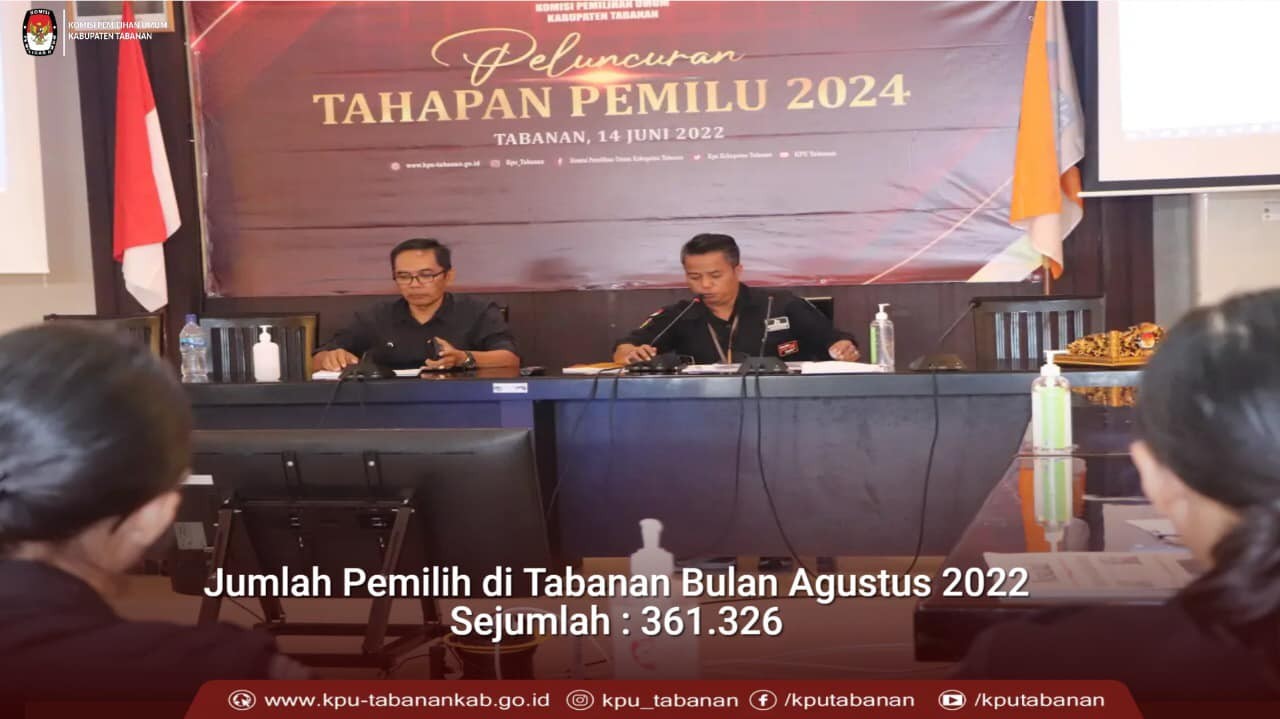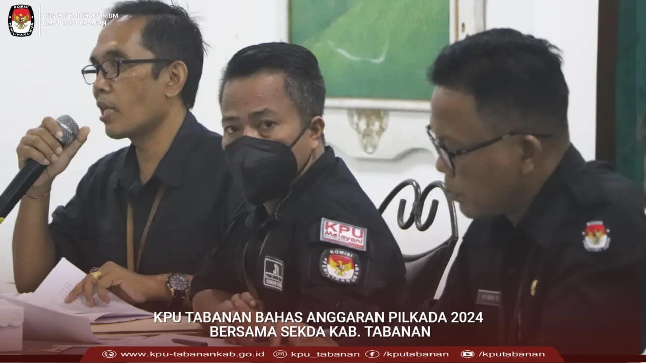 Dilansir dari media sosial KPU Tabanan, unggahan hari Rabu tanggal 31 Agustus 2022, “Sharing perihal Anggaran Pilkada 2024, KPU Tabanan hadiri undangan Sekda Kabupaten Tabanan dalam rapat koordinasi yang juga melibatkan Bepelitbang, Bakeuda, Kesbangpol, Polres dan Kodim 1619 Tabanan dan Bawaslu Tabanan.