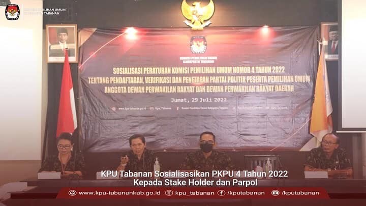 Kegiatan tersebut dilaksanakan dalam rangka penyelenggaraan Tahapan pendaftaran Parpol Peserta Pemilu tahun 2024. Hadir dalam kesempatan itu yakni Ketua KPU Tabanan, I Gede Putu Weda Subawa, sekaligus membuka acara.
