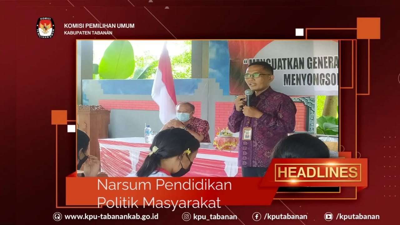KPU Tabanan, Dangin Carik – Dalam rangka meningkatkan persentase partisipasi Masyarakat menggunakan hak pilih dalam Pemilu dan meningkatkan pemahaman Masyarakat tentang politik sesuai surat Badan Kesbangpol Kabupaten Tabanan.