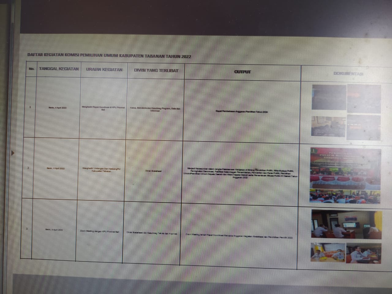 Daftar kegiatan KPU Kabupaten Tabanan dari tanggal 4 - 8 April tahun 2022 Selasa, 12 April 2022 00:00 32 Berikut disampaikan faftar kegiatan KPU Kabupaten Tabanan dari tanggal 4 - 8 April tahun 2022, suntuk lebih jelasnya silahkan download Baca Selengkapnya