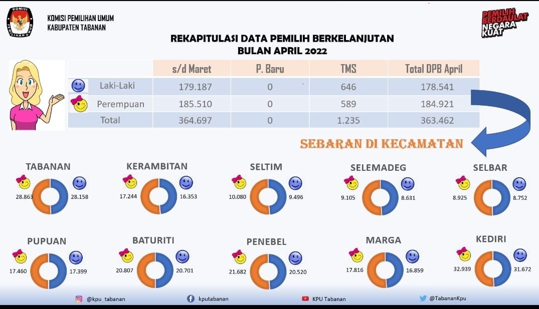 PDPB Kabupaten Tabanan Mei 2022 Senin, 30 Mei 2022 00:00 49 Berikut Kami sampaikan Jumlah Pemilih pada Pemutakhiran Data Pemilih Berkelanjutan bulan Mei tahun 2022.Silahkan downlod Baca Selengkapnya