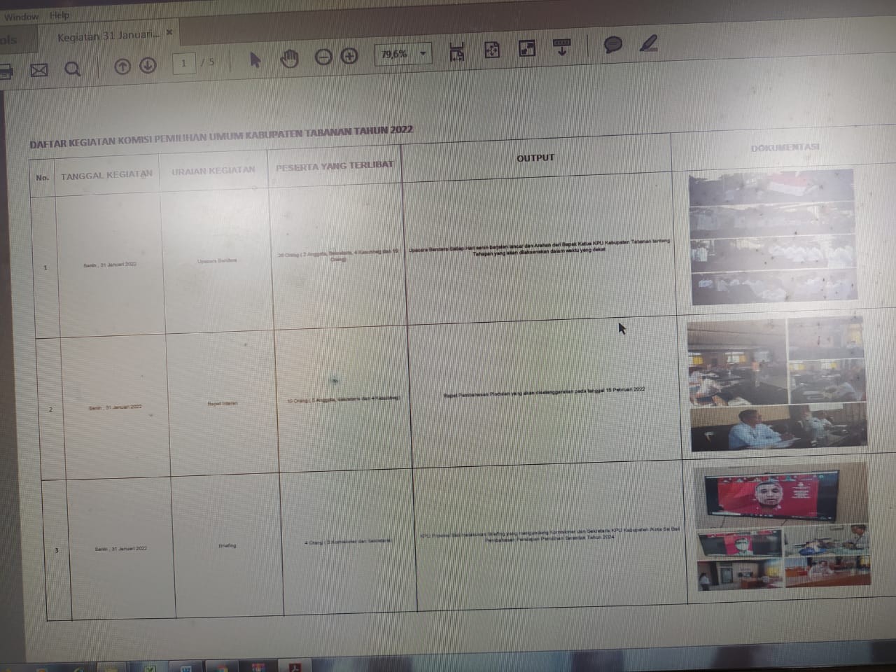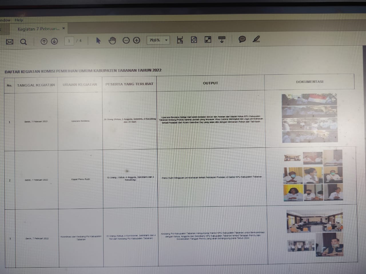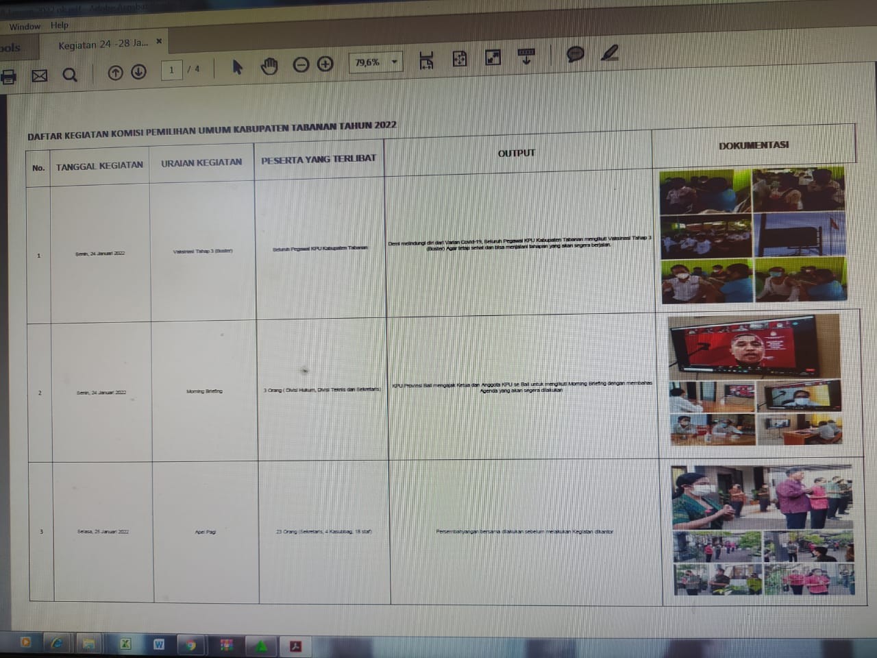 Dengan ini Kami samapaikan daftar kegiatan rutin selama seminggu pada KPU Kabupaten Tabanan dari tgl. 24 - 28 Januari tahun 2022.