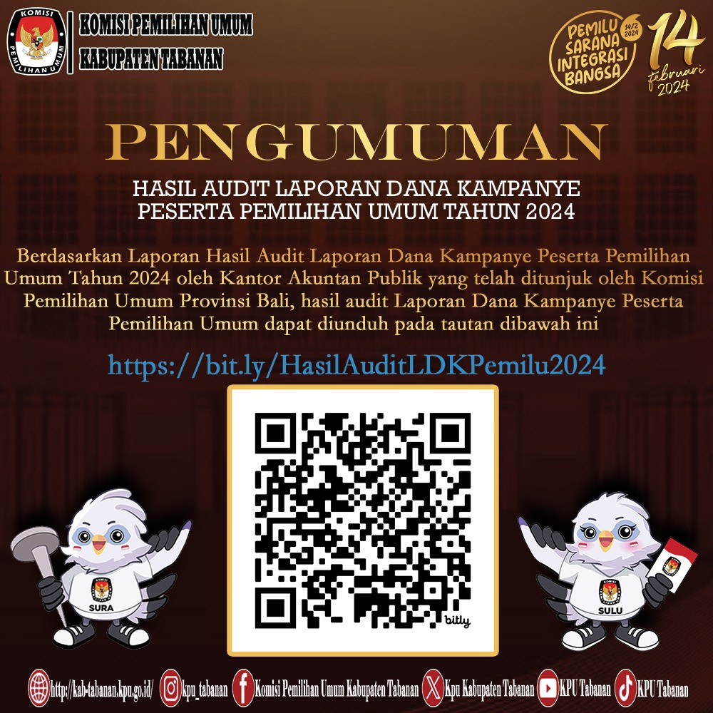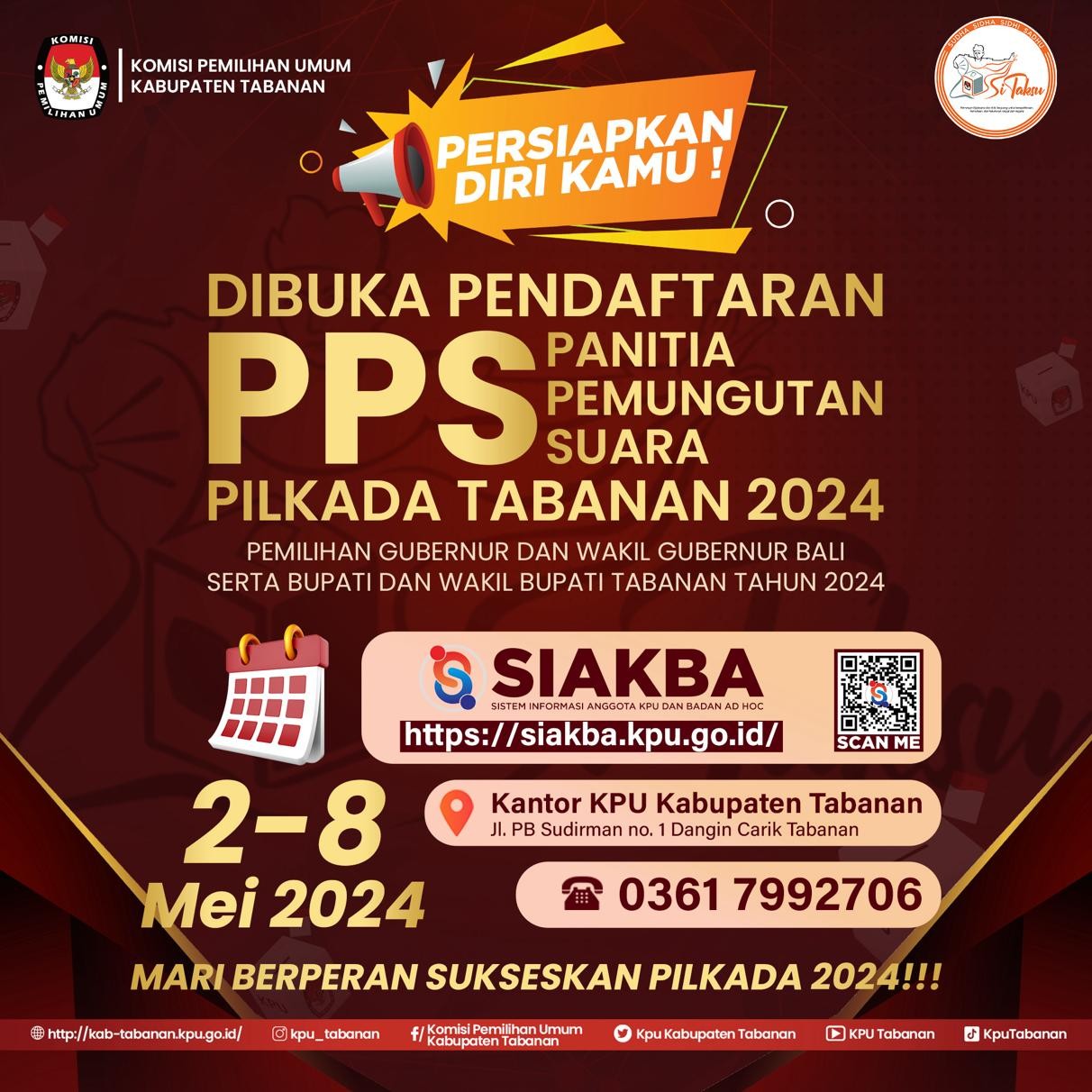 #TemanPemilih, khususnya warga Tabanan yuk persiapkan diri kalian, bahwa dalam rangka Pilkada Serentak 2024 KPU Tabanan Mengumumkan Perekrutan Badan Adhoc Panitia Pemilihan Kecamatan ( PPK ), untuk informasi selengkapnya dapat diunduh pada link berikut