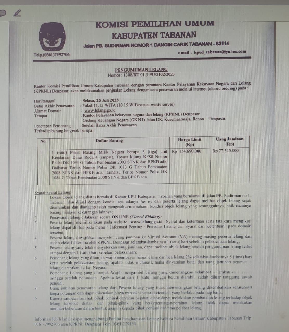 Informasi pendaftaran selengkapnya dapat dilihat melalui link : https://bit.ly/PengumumanSeleksiKPUBali2Tahun2023